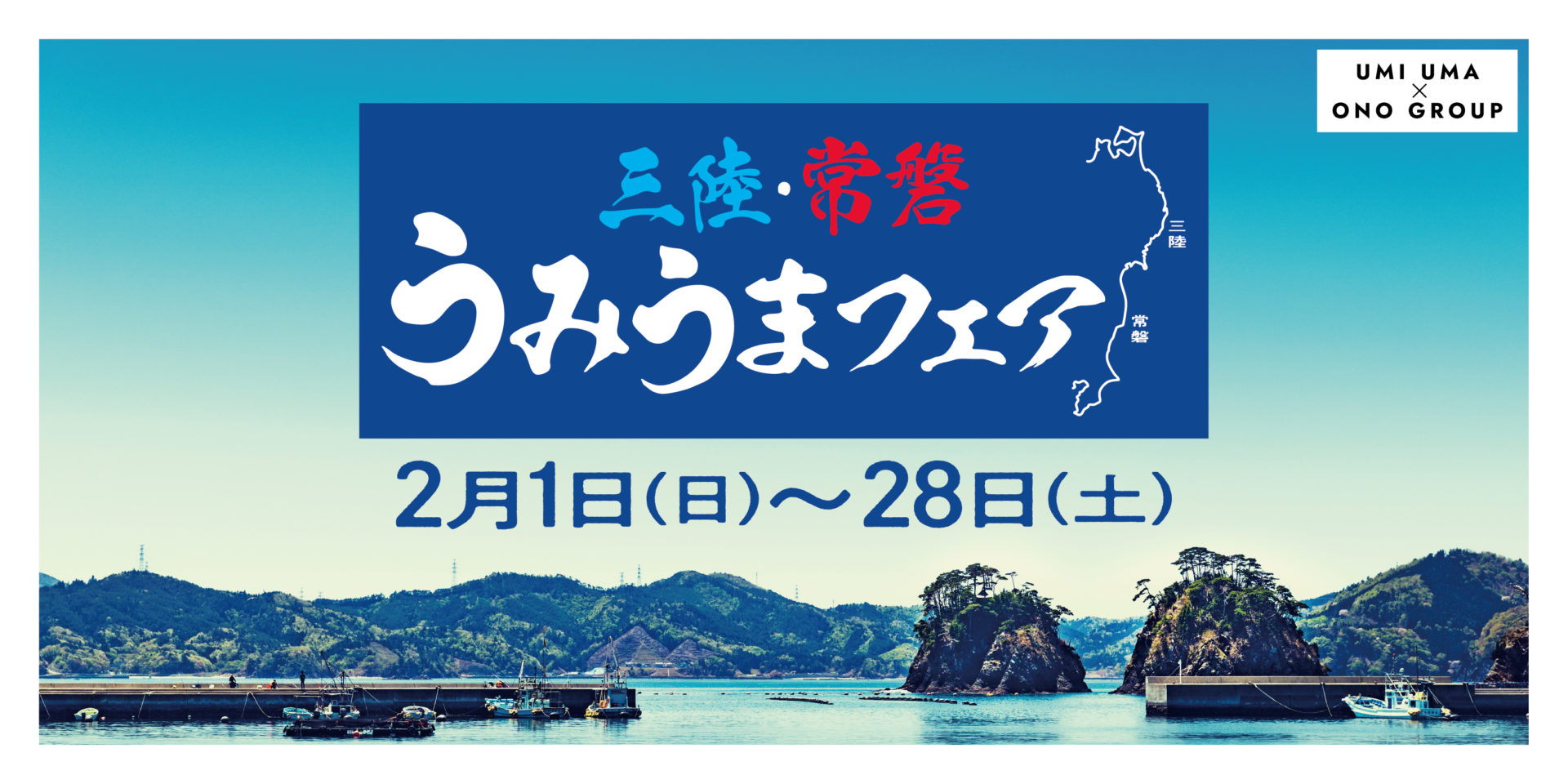 “うみ”の“うま”いものには、愛がある♥ 東北の味覚を楽しみませんか? 三陸・常磐の海の幸“UMIUMAグルメ”を全国各地の人気飲食店100店舗以上で楽しめる 「三陸・常磐うみうまフェア」が2月1日から期間限定でスタートします。 そのグルメフェアに今年もONO GROUPが参加することと