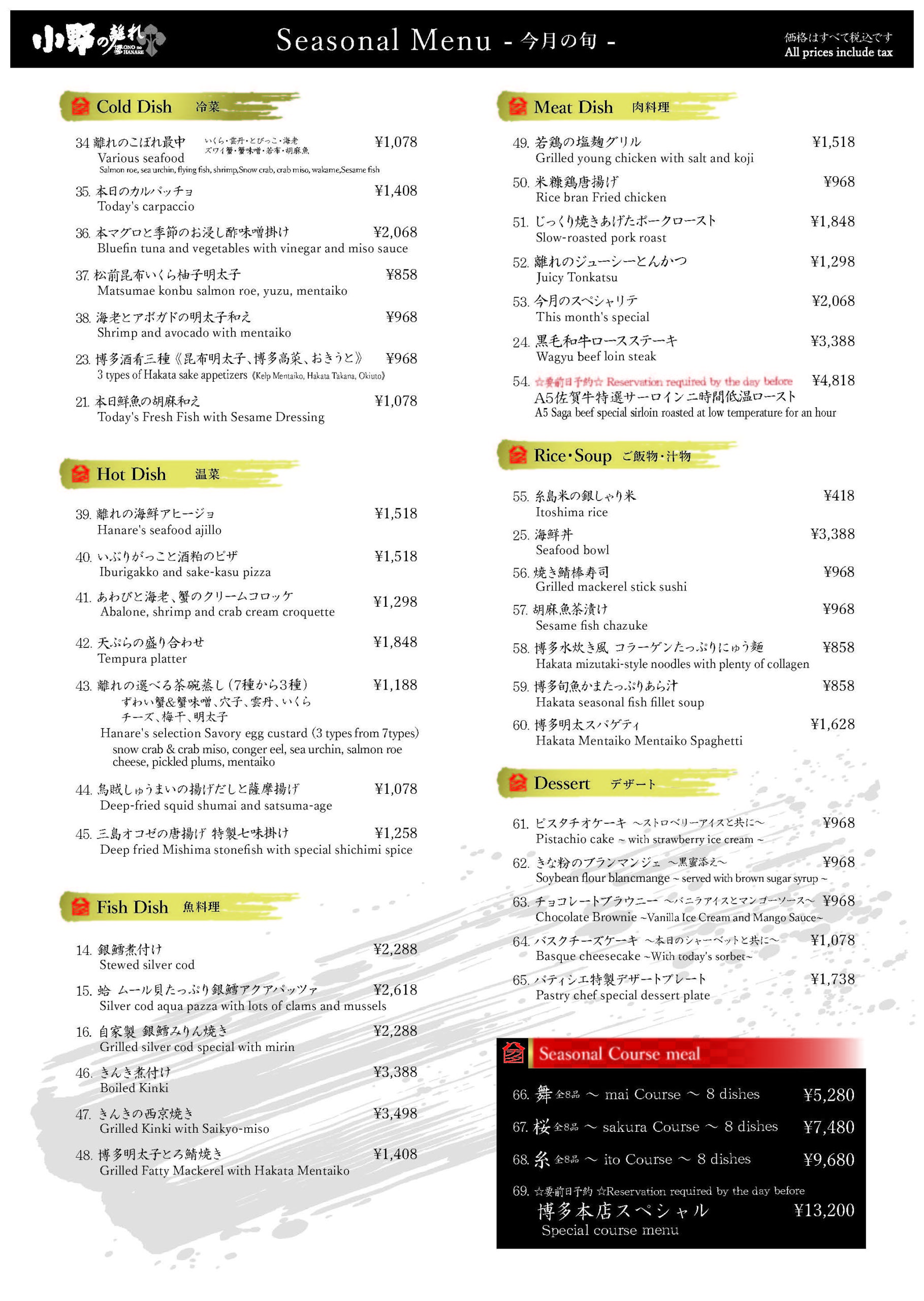 小野の離れ 博多本店オノノハナレ ハカタホンテン