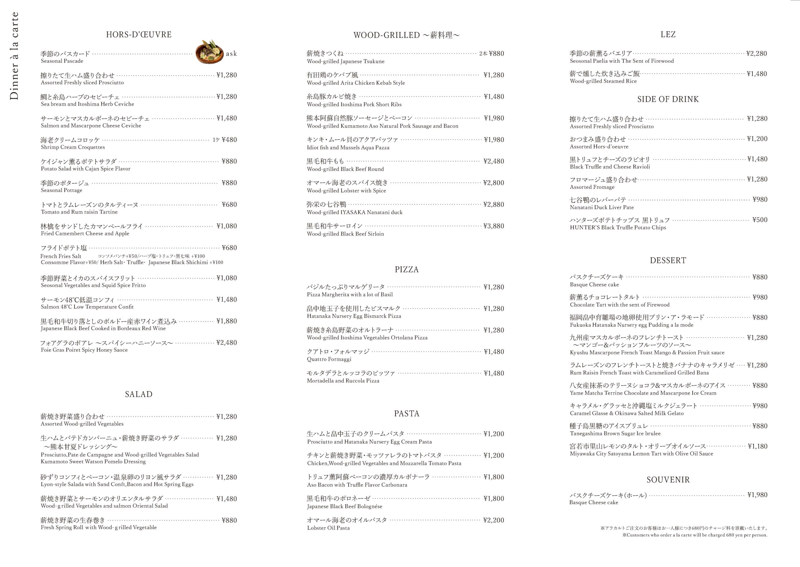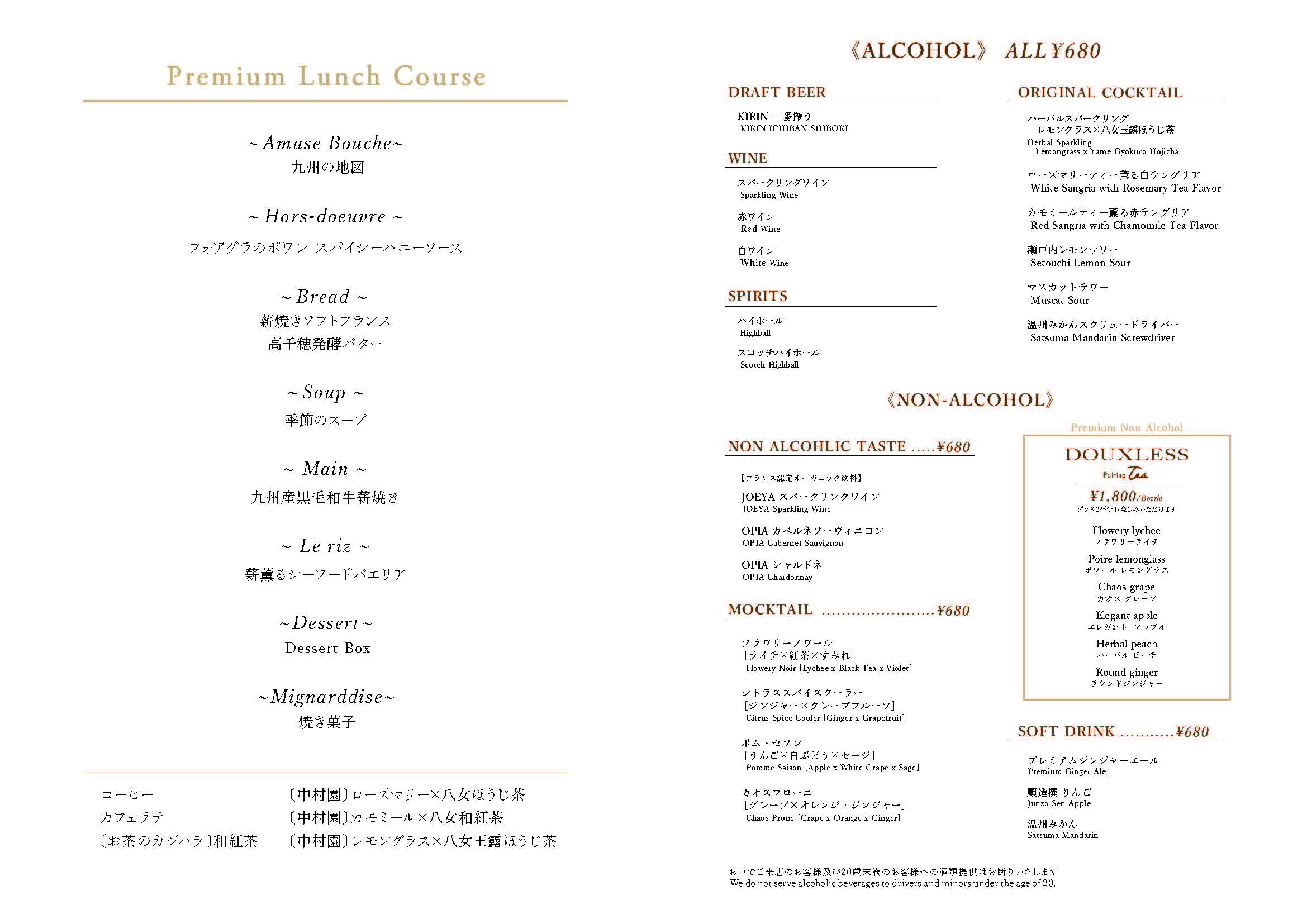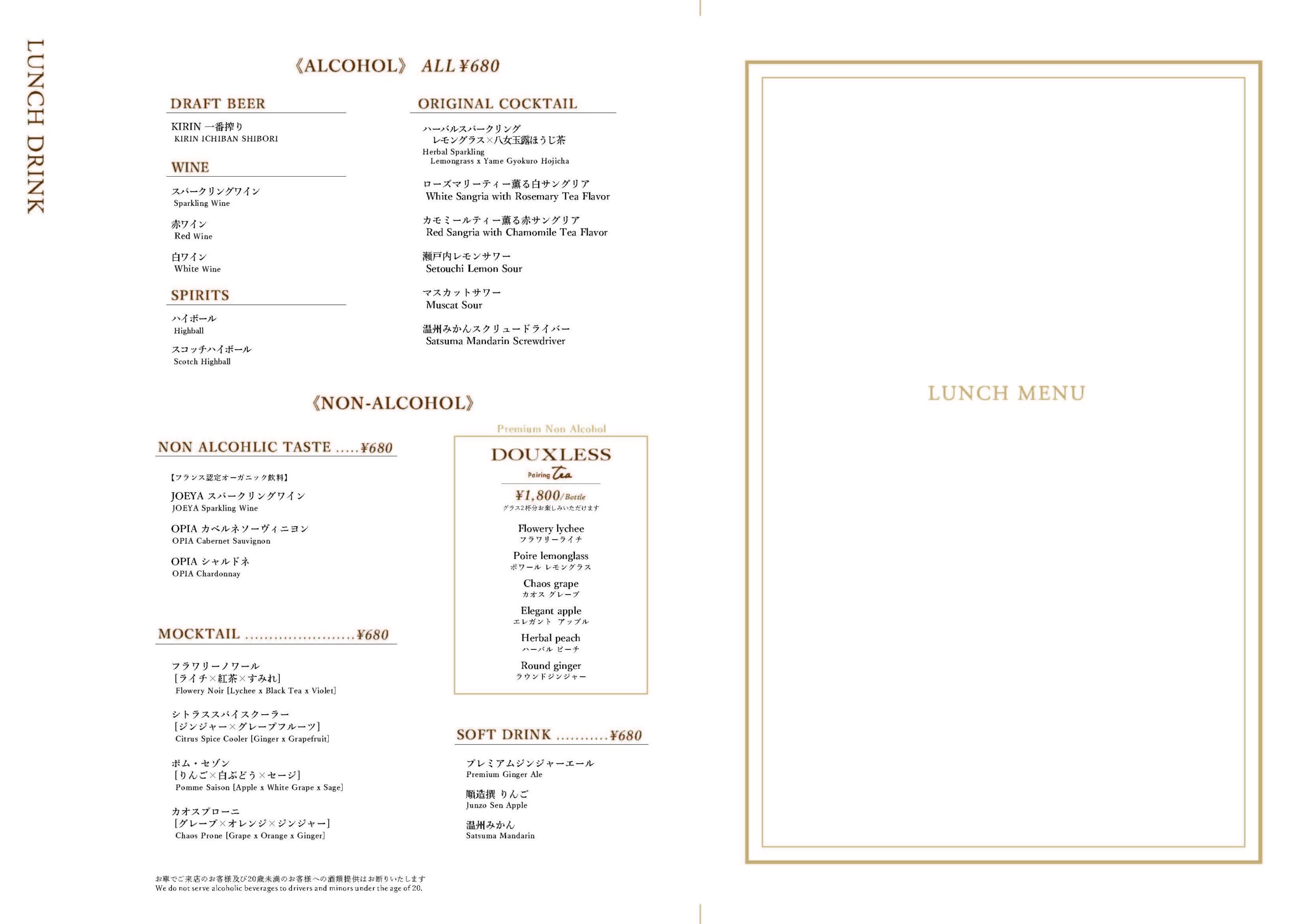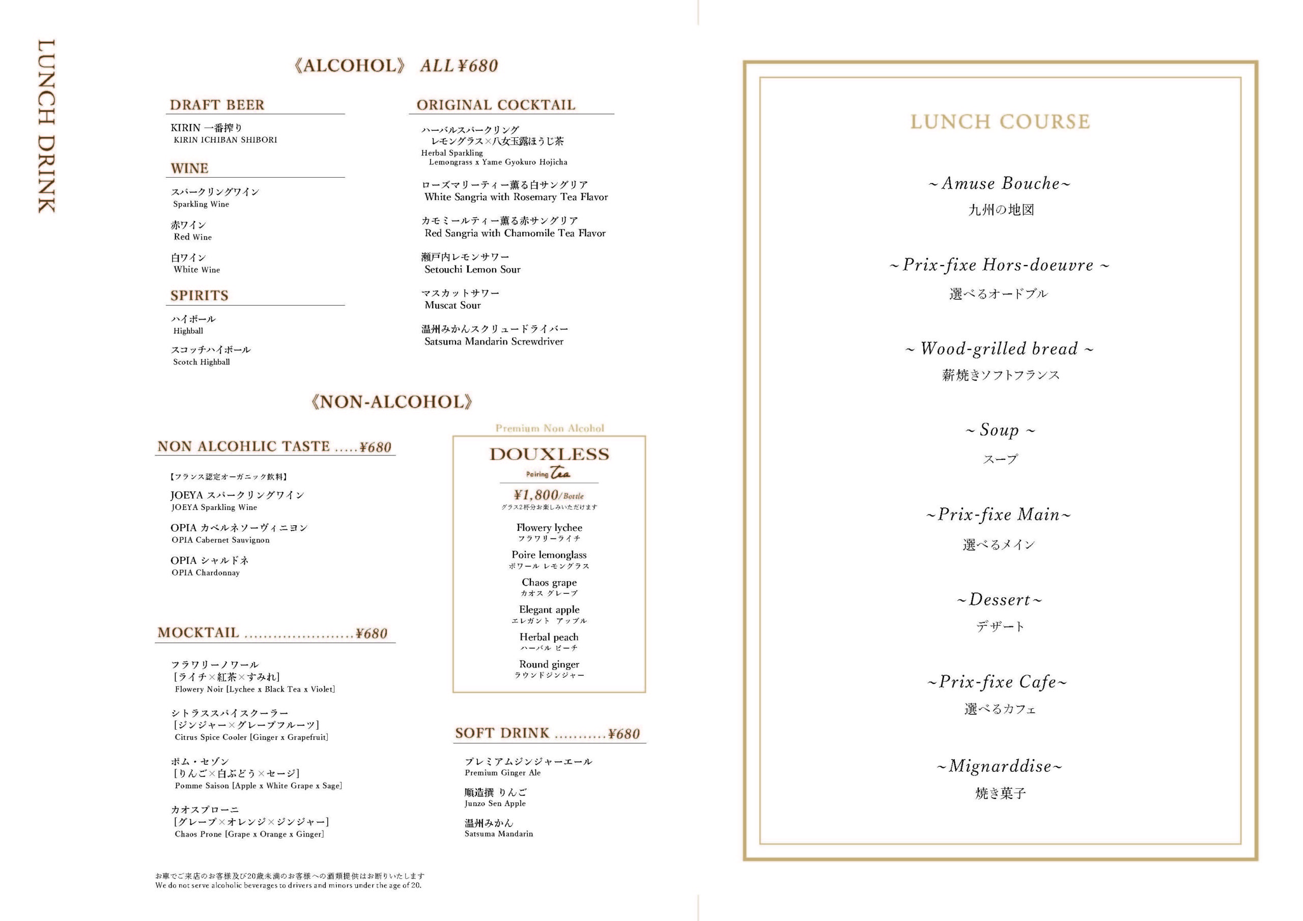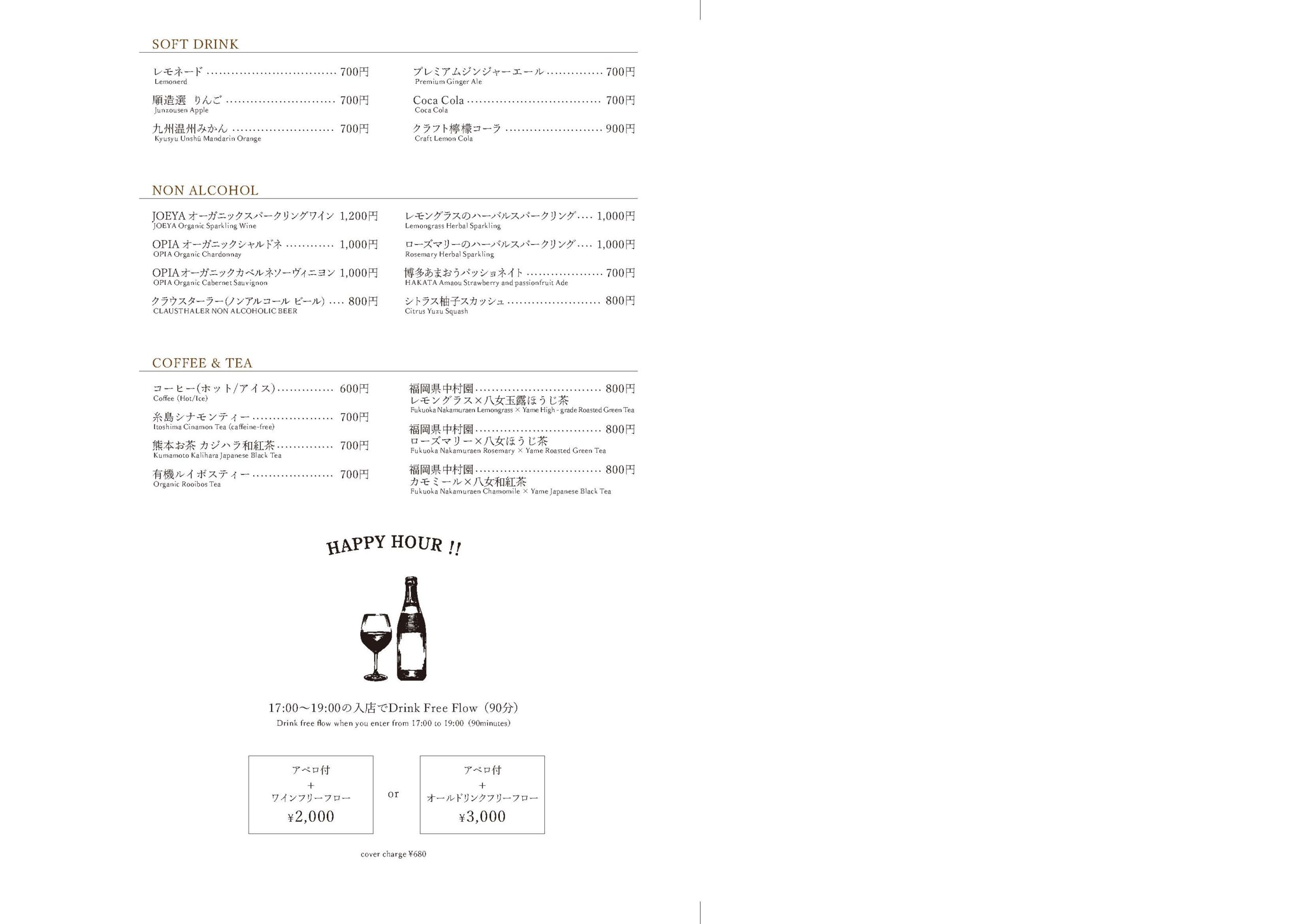 ※お車でご来店のお客様及び20歳未満のお客様への酒類提供は