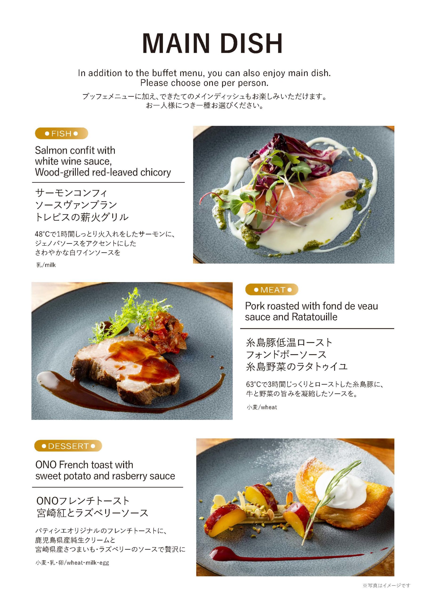 シェフこだわりのお料理やトップパティシエの技が光るデザートをお愉しみいただけます。